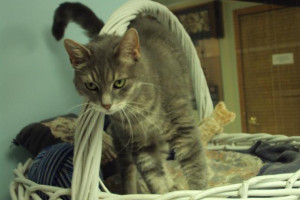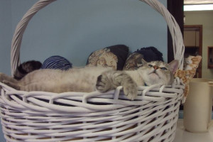 Bam Bam just realized that the basket is not only the perfect place to nap, but also a back scratcher!