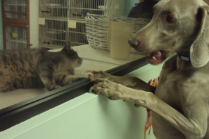Bam Bam loves to tease Hank through the window!