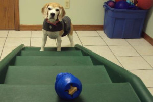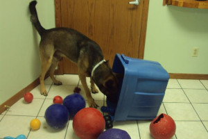 Benny just can't seem to decide which toy to play with!