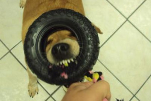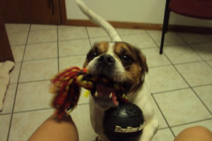 Tucker loves playing tug of war!
