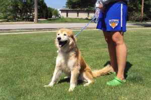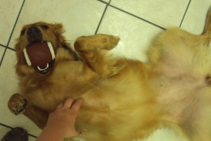 Ginger can't decide if she wants to play fetch or get a belly rub!