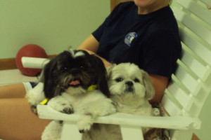 Fonzie participating in our afternoon pilates class!