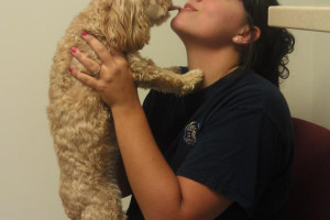 Lucy loves to give our staff kisses!