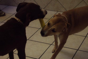 We have so many toys here, but Asti and Kona decided they wanted the same one!
