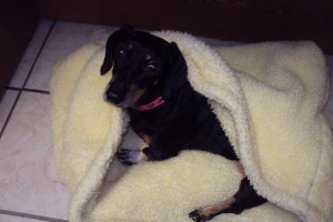Zoe all snuggled up in the front office!